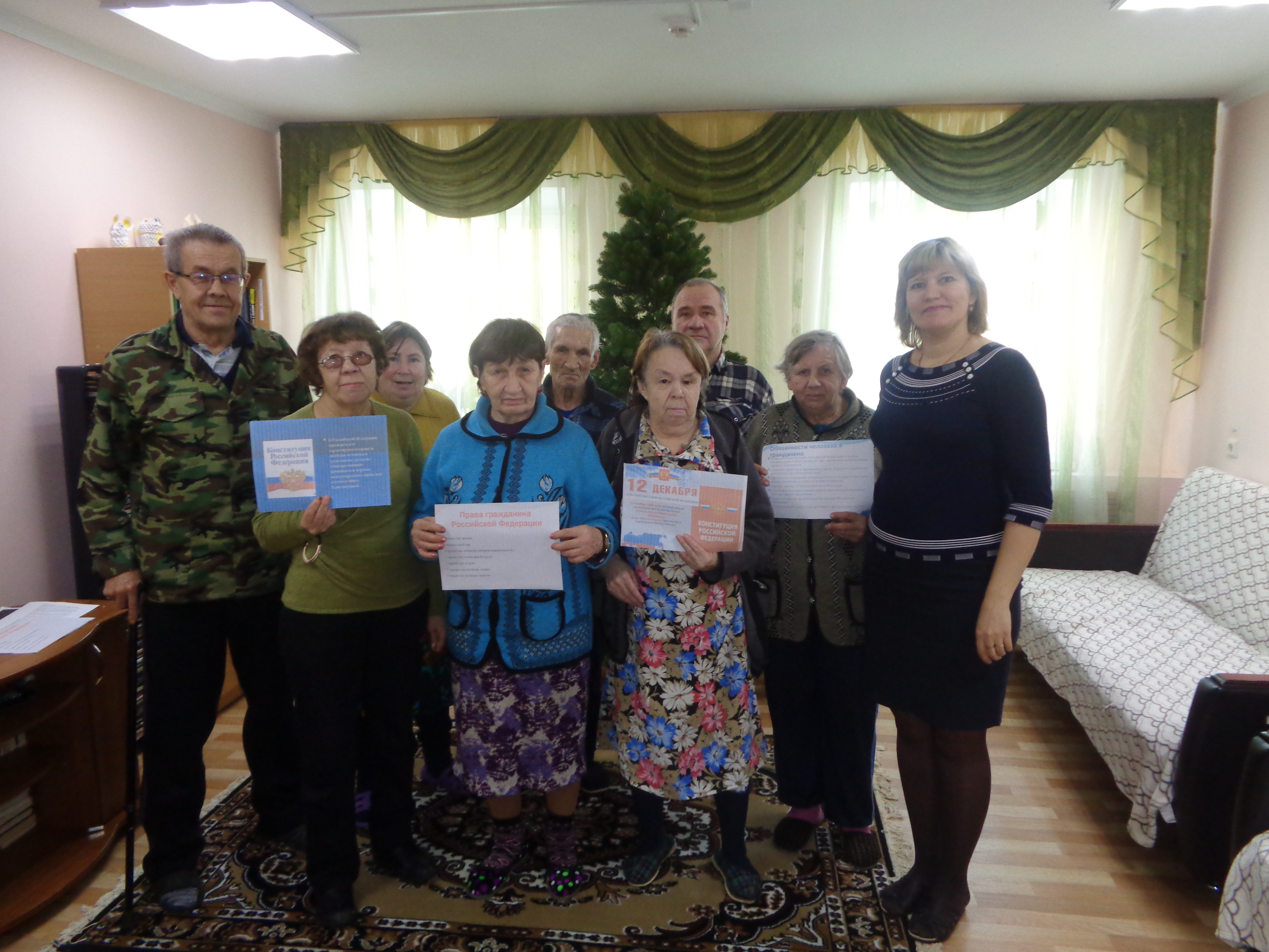 Сегодня,12 декабря 2018 года, в «Спасском доме - интернате для престарелых и инвалидов» воспитателем Шишкиной Р.Г., была проведена правовая беседа, посвящённая «Дню Конституции Российской Федерации». В ходе беседы воспитатель познакомила получателей социальных услуг: с Декларацией прав человека, историей Конституцией Российской Федерации, а также рассказала об основных законах, заложенных в Конституции и о том, что помимо прав у каждого гражданина есть ещё и обязанности.