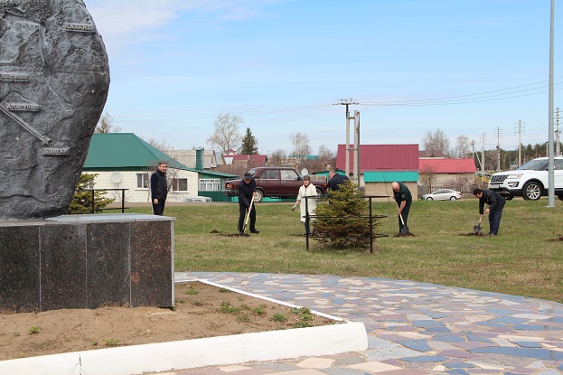 В канун всенародного праздника Дня Победы в Великой Отечественной войне, глава района КамильНугаев и другие ответственные работники в этот день сажали молодые деревца рябины на территории около Памятного знака «Казанский обвод».