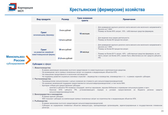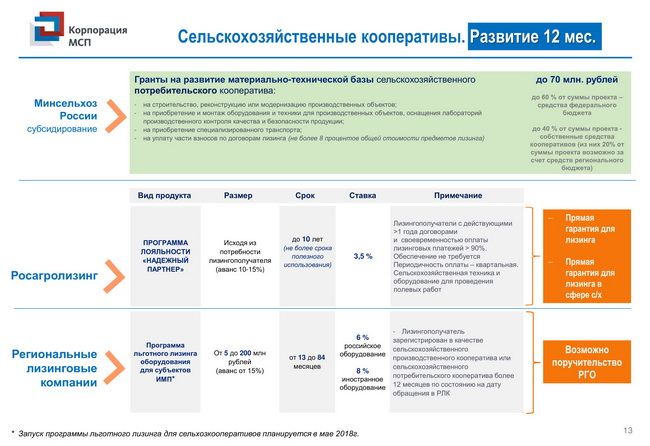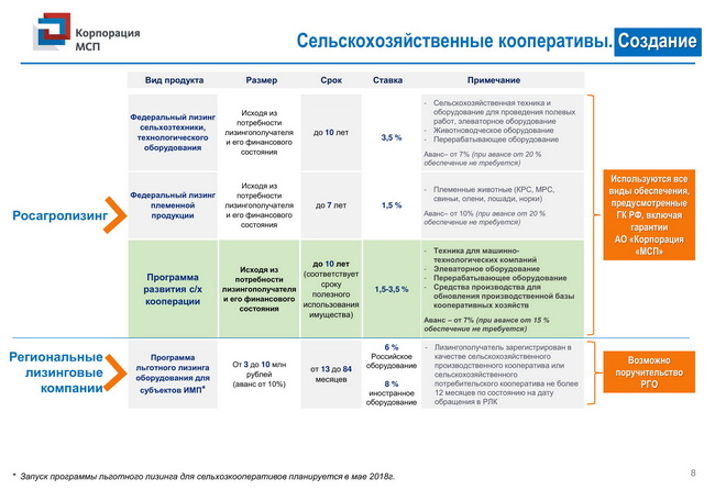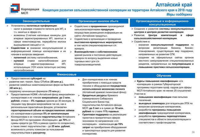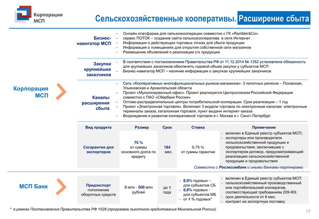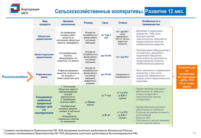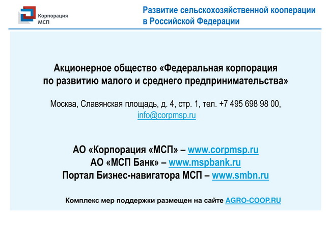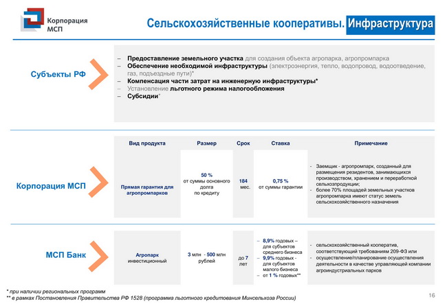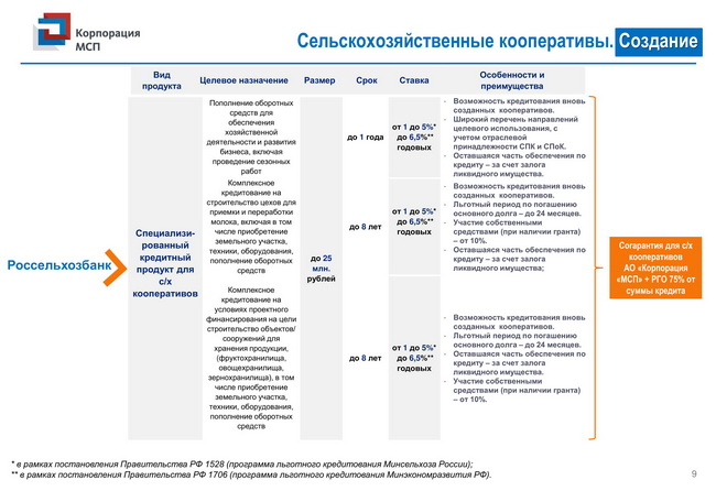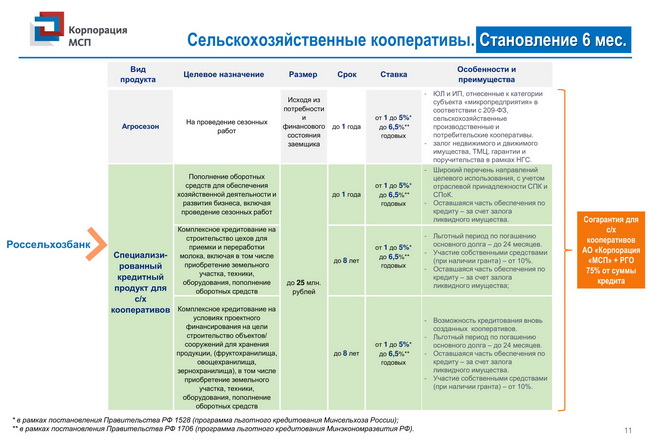 Комплекс мер поддержки для сельскохозяйственных кооперативов и фермеров-членов сельскохозяйственных кооперативов