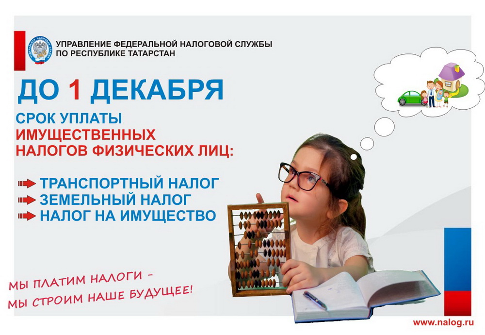 Срок уплаты имущественных налогов физических лиц до 1 декабря
