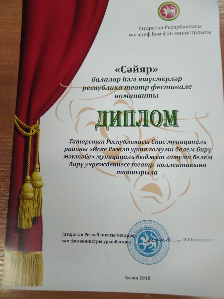 В отборочный тур они отправили видеоролик с театрализованной постановкой по правилам дорожного движения. 29 октября на зональном туре они выступили на сцене г. Чистополь. Церемония награждения победителей прошла 16 ноября в Татарском государственном театре драмы и комедии имени К. Тинчурина. Наши участники были приглашены сначала в кафе «Акчарлак», а после на церемонию награждения. Они были награждены дипломом номинанта Министерства образования и науки РТ и подарочной картой.