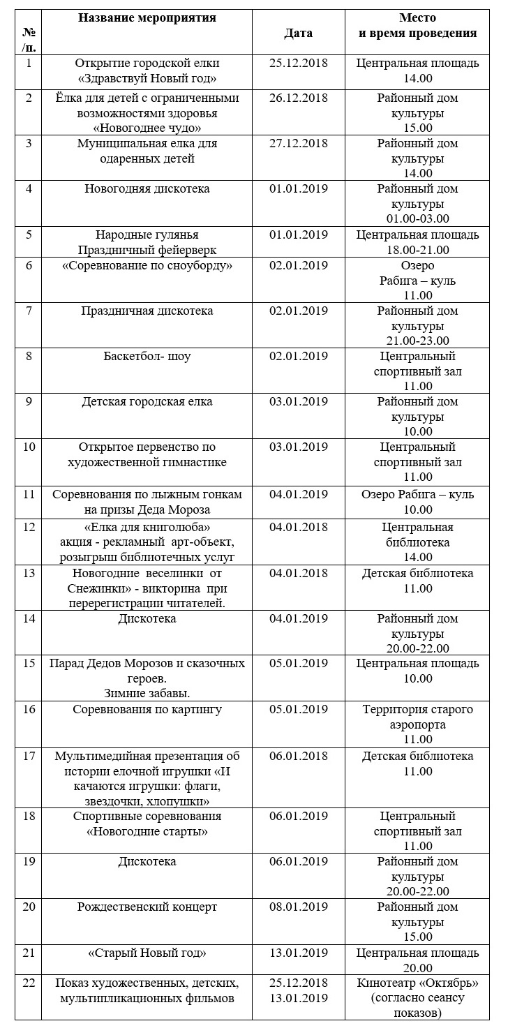 План новогодних мероприятий по Спасскому муниципальному району Республики Татарстан