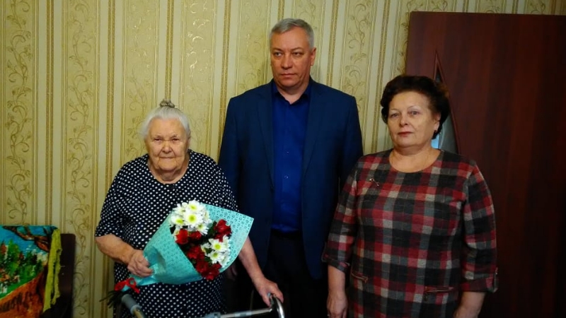 Вручил Екатерине Павловне поздравительную открытку от Президента Российской Федерации В.В. Путина, от Главы Спасского муниципального района К.А. Нугаева, а также продуктовый набор, цветы. Так же юбиляршу поздравили Т.Н. Бурумова председатель совета ветеранов, сотрудники социальной защиты, родные и близкие.