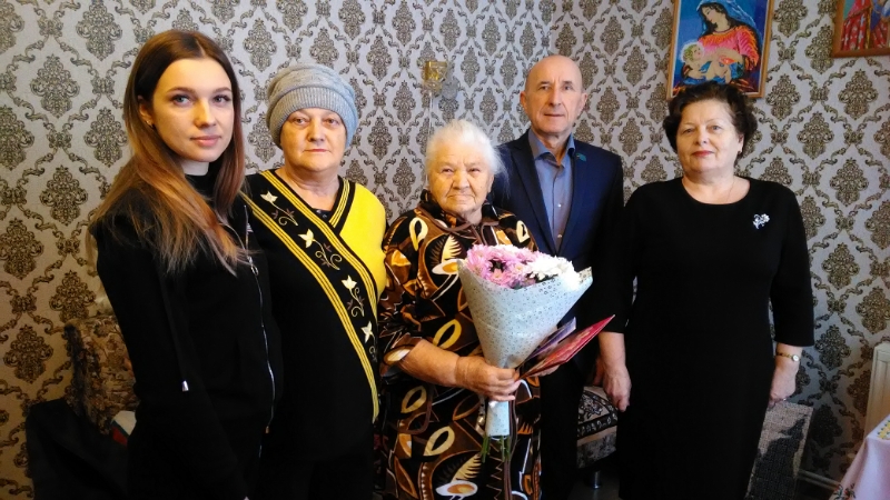 Вручил Клавдии Ильиничне поздравительную открытку от Главы Спасского муниципального района К.А. Нугаева, а также продуктовый набор и цветы. Так же юбиляршу поздравили Т.Н. Бурумова председатель совета ветеранов, сотрудники социальной защиты, родные и близкие.