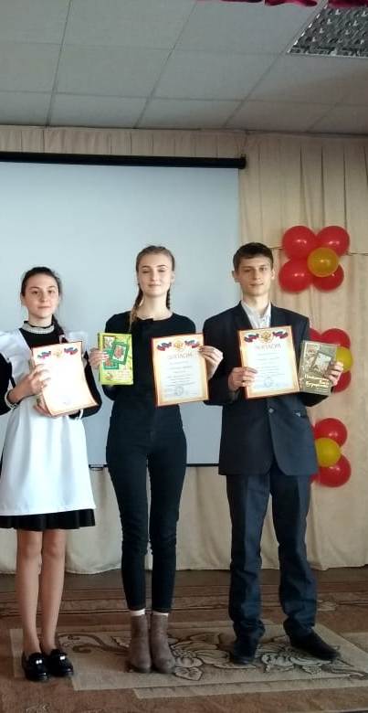 Всего в конкурсе приняли участие 28 обучающихся из 11 образовательных организаций. Победителями районного этапа стали Акулина Анна, ученица 8 класса МБОУ «Антоновская СОШ», Денисов Дмитрий, ученик 10 класса МБОУ «Болгарская СОШ № 1 с углубленным изучением отдельных предметов» и Малушина Елизавета, ученица 10 класса МБОУ «Болгарская СОШ № 1 с углубленным изучением отдельных предметов». Победителям конкурса были вручены дипломы, участникам конкурса грамоты. Всем участники конкурса были вручены ценные подарки – книги.