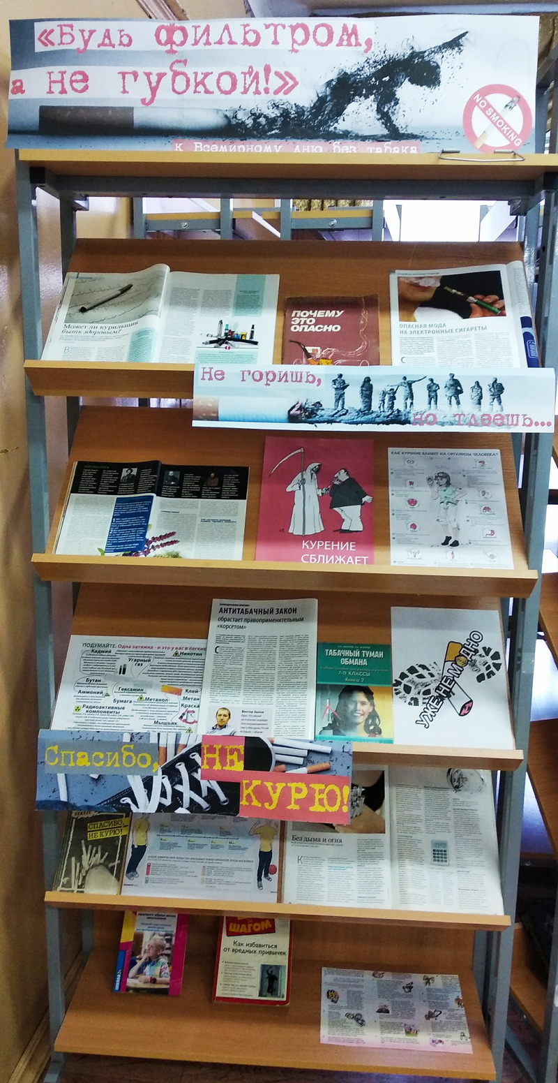На абонементе Центральной библиотеки, в рамках Всемирного дня без табака, открыта книжная выставка «Будь фильтром, а не губкой!», состоящая из двух разделов
