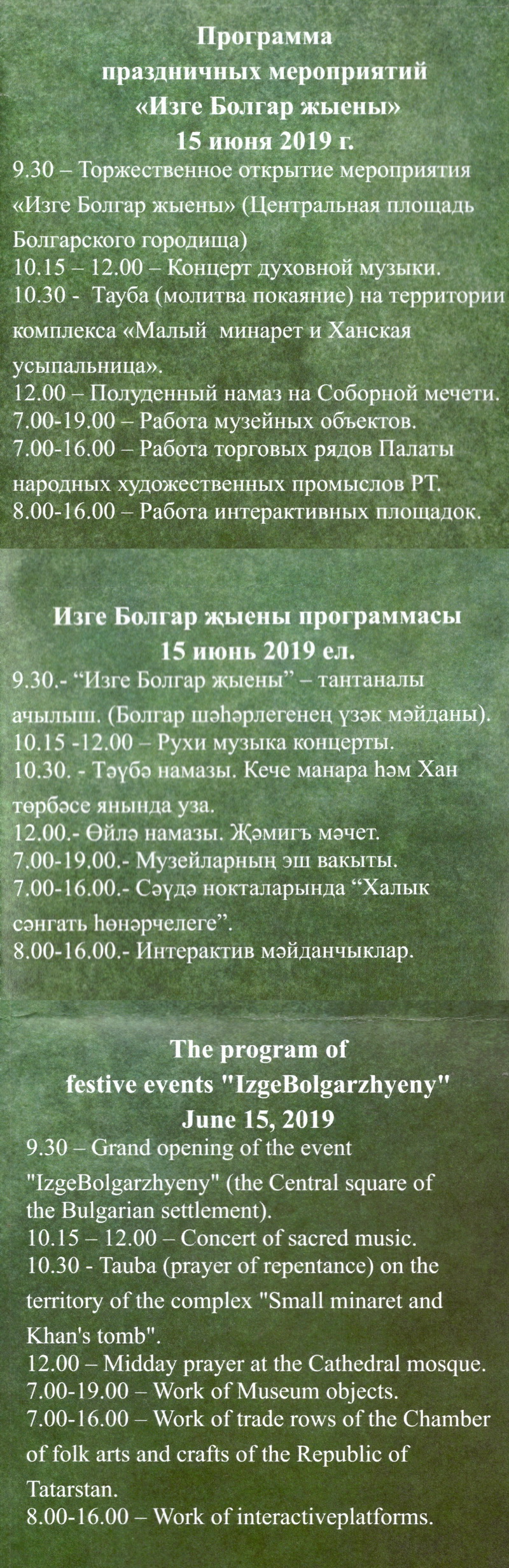 Программа мероприятий «ИЗГЕ БОЛГАР ЖЫЕНЫ» - 2019