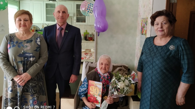 Вручил Валентине Яковлевне поздравительные открытки от Президента Российской Федерации В.В. Путина, Главы Спасского муниципального района Ф.В. Мухаметова, подарочный набор и цветы. Также юбиляршу поздравили Т.Н. Бурумова - председатель совета ветеранов, сотрудники социальной защиты, родные и близкие.