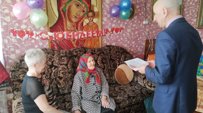 Вручил Елизавете Захаровне поздравительные открытки от Президента Российской Федерации В.В. Путина, Главы Спасского муниципального района Ф.В. Мухаметова, подарочный набор и цветы. Также юбиляршу поздравили председатель районной организации ветеранов Бурумова Т.Н., сотрудники социальной защиты, родные и близкие.