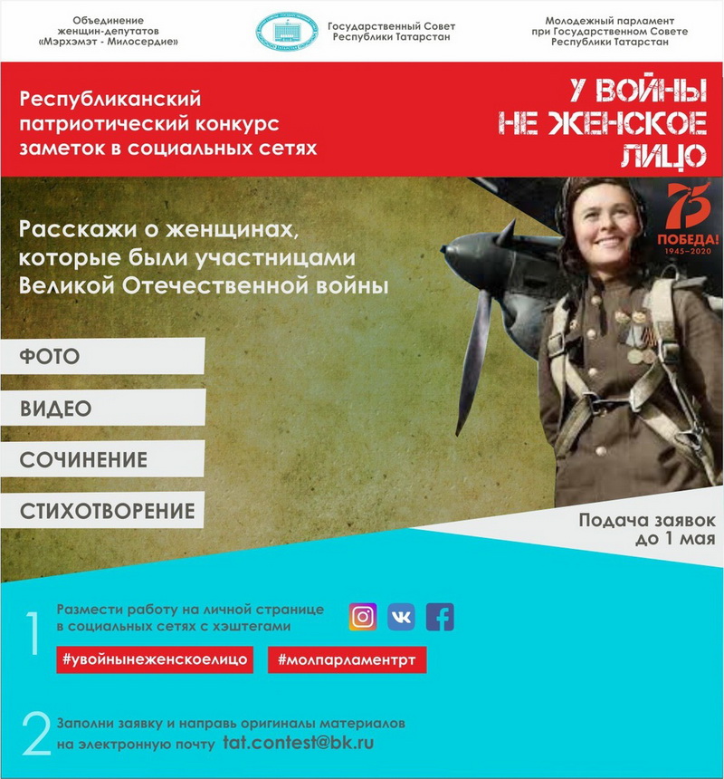 Конкурс посвящен 75-летию Победы в Великой Отечественной войне и направлен на вовлечение населения Республики Татарстан в разработку и создание позитивного контента, ориентированного на нравственно-патриотическое воспитание молодежи, сохранение памяти о женщинах – участницах Великой Отечественной войны.⠀