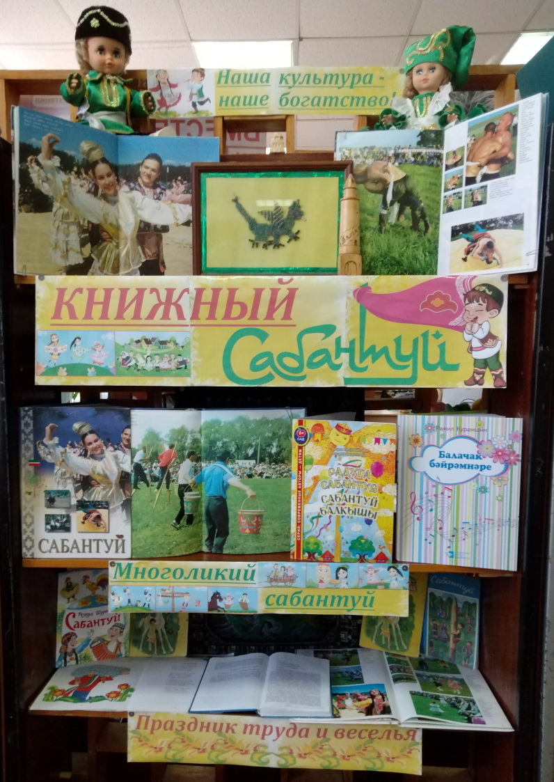 И в детской библиотеке мы не забыли так любимый детьми Сабантуй. На абонементе детской библиотеки оформлена яркая, информативная, веселая выставка-праздник «Книжный Сабантуй». На ней представлены книги об истории, традициях, культуре праздника, это: «Радуга Сабантуя» - автор А.Ситдыйкова, «Сабантуй» - автор Р.Шарипова, «Сабнтуй» - автор Э.Блинова и др.