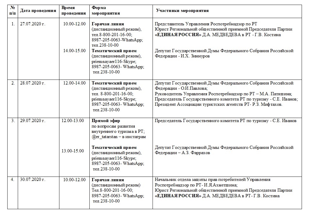 С 27 по 30 июля 2020 г. Региональная общественная приемная Партии "ЕДИНАЯ РОССИЯ" проводит прием граждан по вопросам защиты прав потребителей в сфере туристического обслуживания