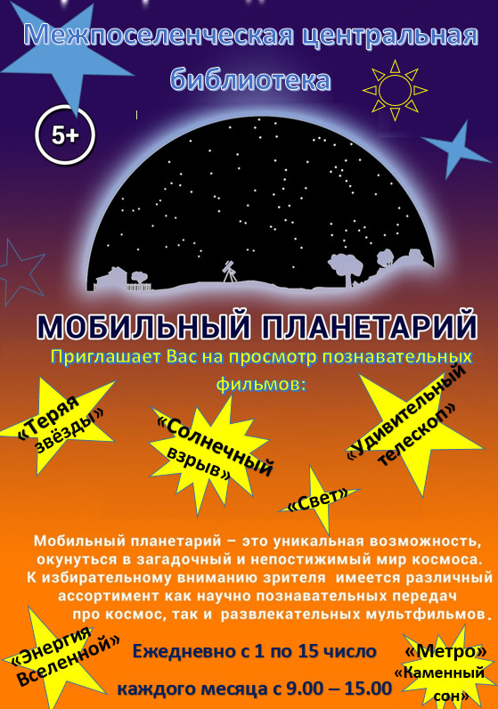 Приглашаем Вас посетить мобильный планетарий в читальном зале Центральной библиотеки г. Болгара.