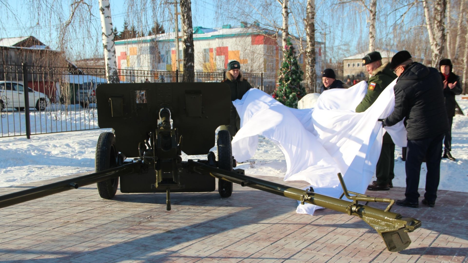 Память погибших почтили минутой молчания, а после, пушечным выстрелом из ЗИС-3 и торжественным маршем отдали присутствующие дань уважения и памяти нашим героям.