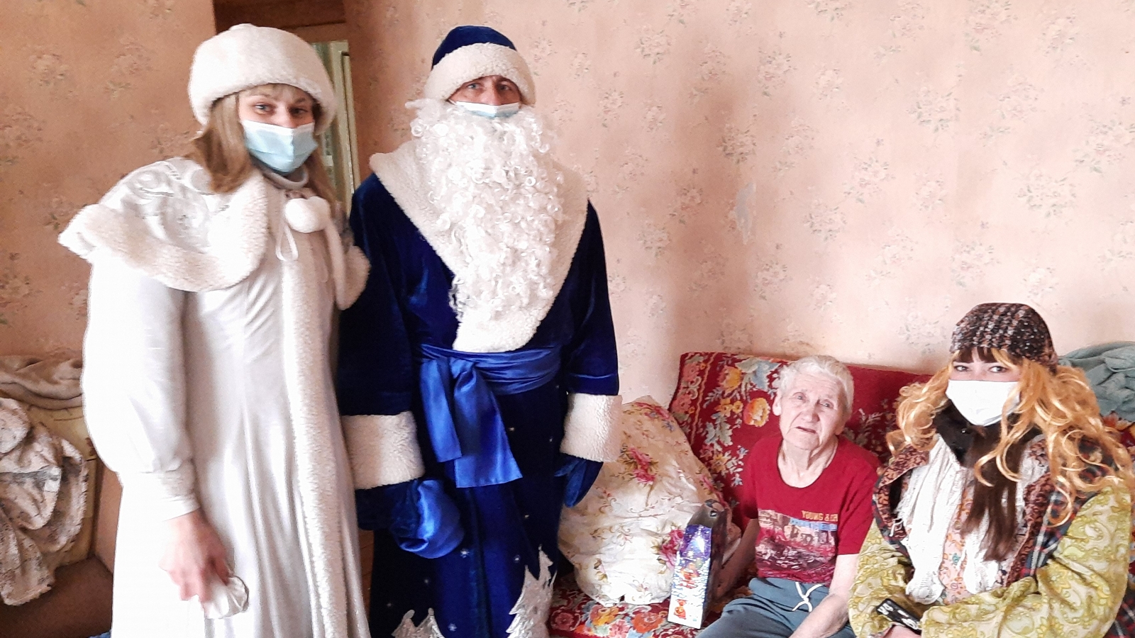 Активное участие в выделении транспортного средства с гсм оказал Болгарская детская школа искусств. Дед Мороз, Снегурочка и отважная помощница Баба Яга вручили пенсионерам сладкие подарки и продуктовые пакеты.