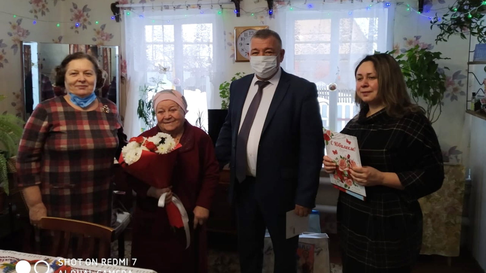 Вручил Накие Ситдиковне поздравительную открытку от Президента Российской Федерации В.В. Путина, подарочный набор, цветы. Также юбиляршу поздравили Т.Н. Бурумова - председатель совета ветеранов, сотрудники социальной защиты, сотрудники редакции, родные и близкие.