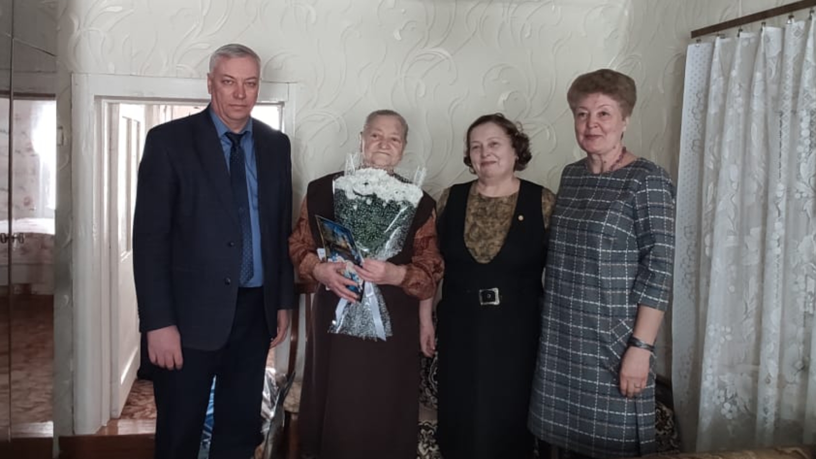 Вручил Александре Яковлевне поздравительную открытку от Президента Российской Федерации В.В. Путина, Главы Спасского муниципального района Ф.В. Мухаметова, подарочный набор и цветы. Также юбиляршу поздравили Т.Н. Бурумова - председатель совета ветеранов, сотрудники социальной защиты, родные и близкие.