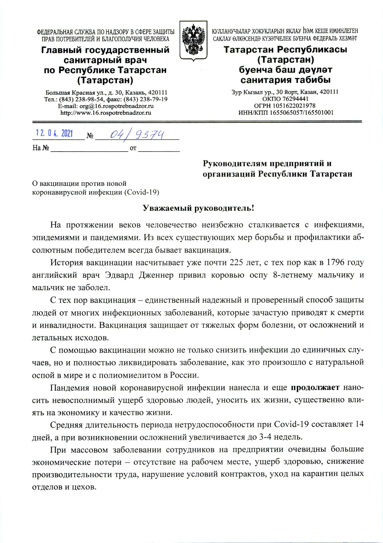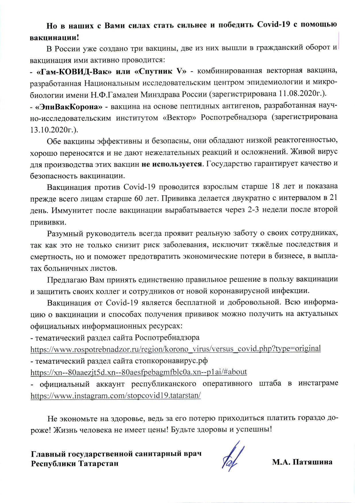 Обращение Главного государственного санитарного врача по РТ