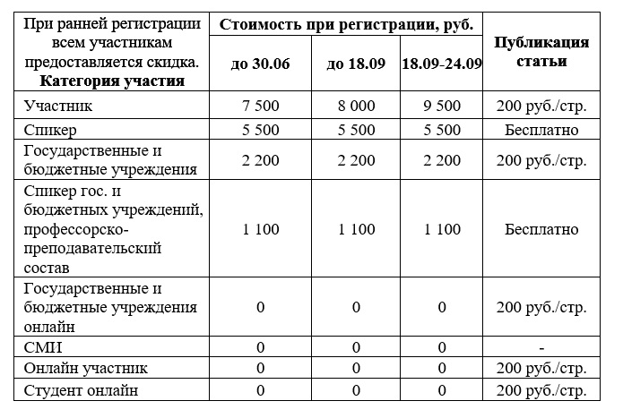 Стоимость участия в форуме