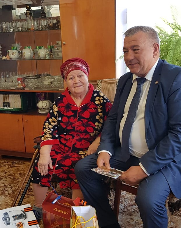 Вместе с начальником социальной защиты Н.В. Шероновой поздравили Накию Ситдиковну с наступающим Днем Победы и вручили подарки.