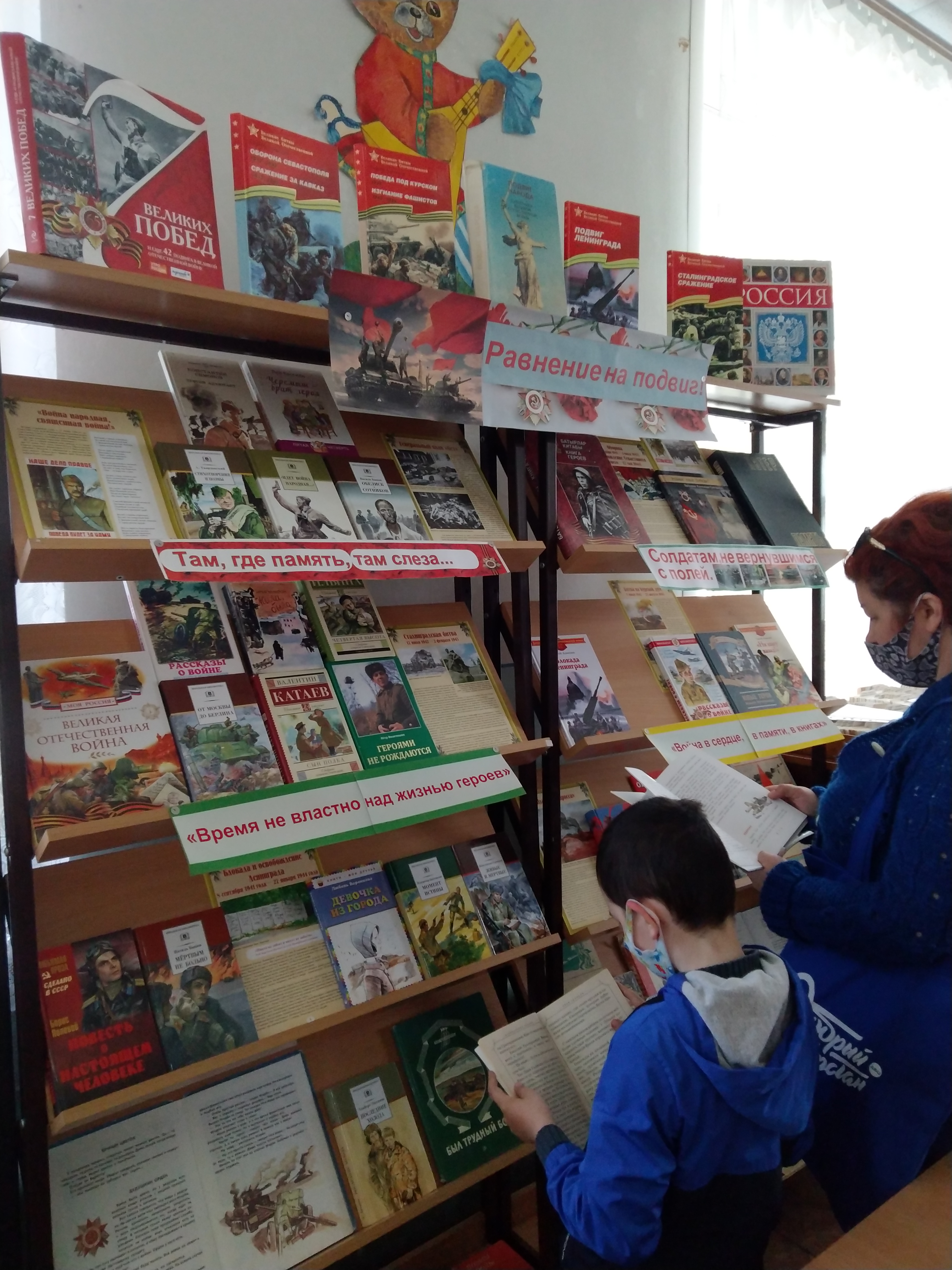 9 мая – светлый и радостный праздник. 76 лет назад закончилась Великая Отечественная война. Мы с благодарностью вспоминаем наших воинов, защитников, отстоявших мир в жестокой битве. Именно этому величайшему событию посвящена, открывшаяся в читальном зале детской библиотеки выставка-реквием «Равнение на подвиг!»