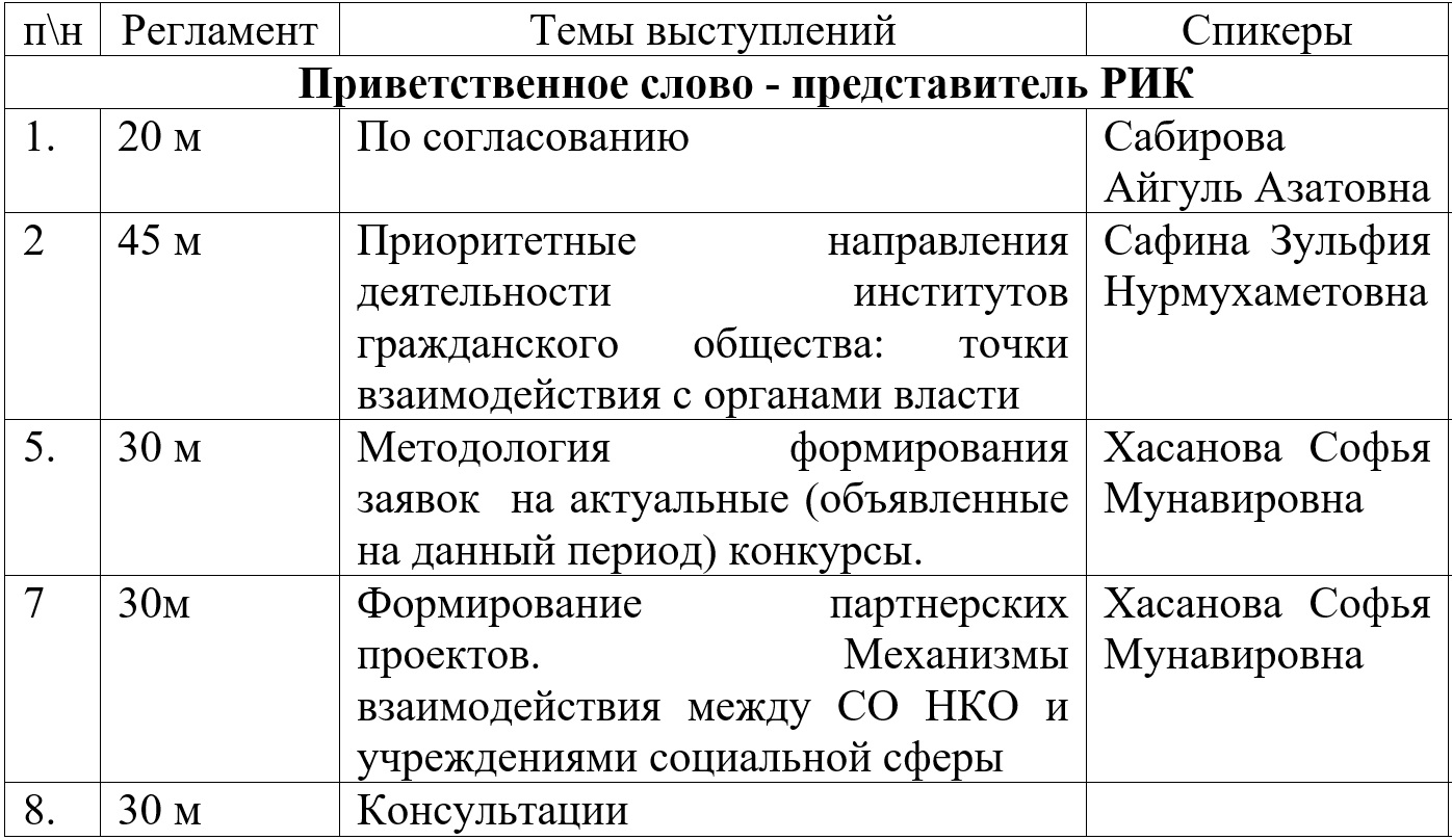 Участники: представители Исполкома МР, руководители (представители) НКО, руководители социальных структур МР (молодежная политика, культура, образование, музей –заповедник спорт социальная защита, в.т. ч от сельских поселений) представители Общественного совета, представители национальных культурных автномий, СМИ).
