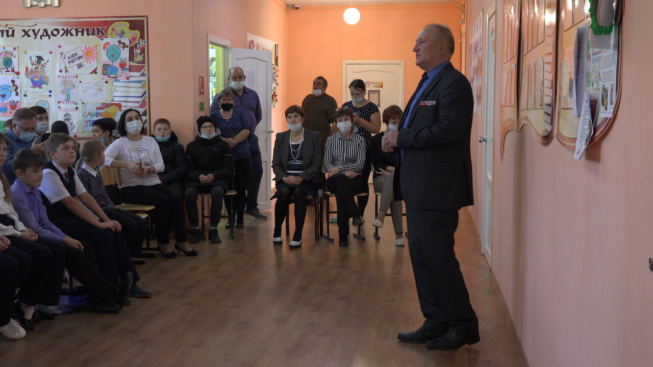 Вначале один из организаторов проекта, Борис Алексеевич Андреянов, являющийся руководителем поискового отряда "Булгар", в стенах школы провел для ребят вводную лекцию и рассказал подробнее о подвиге земляка: