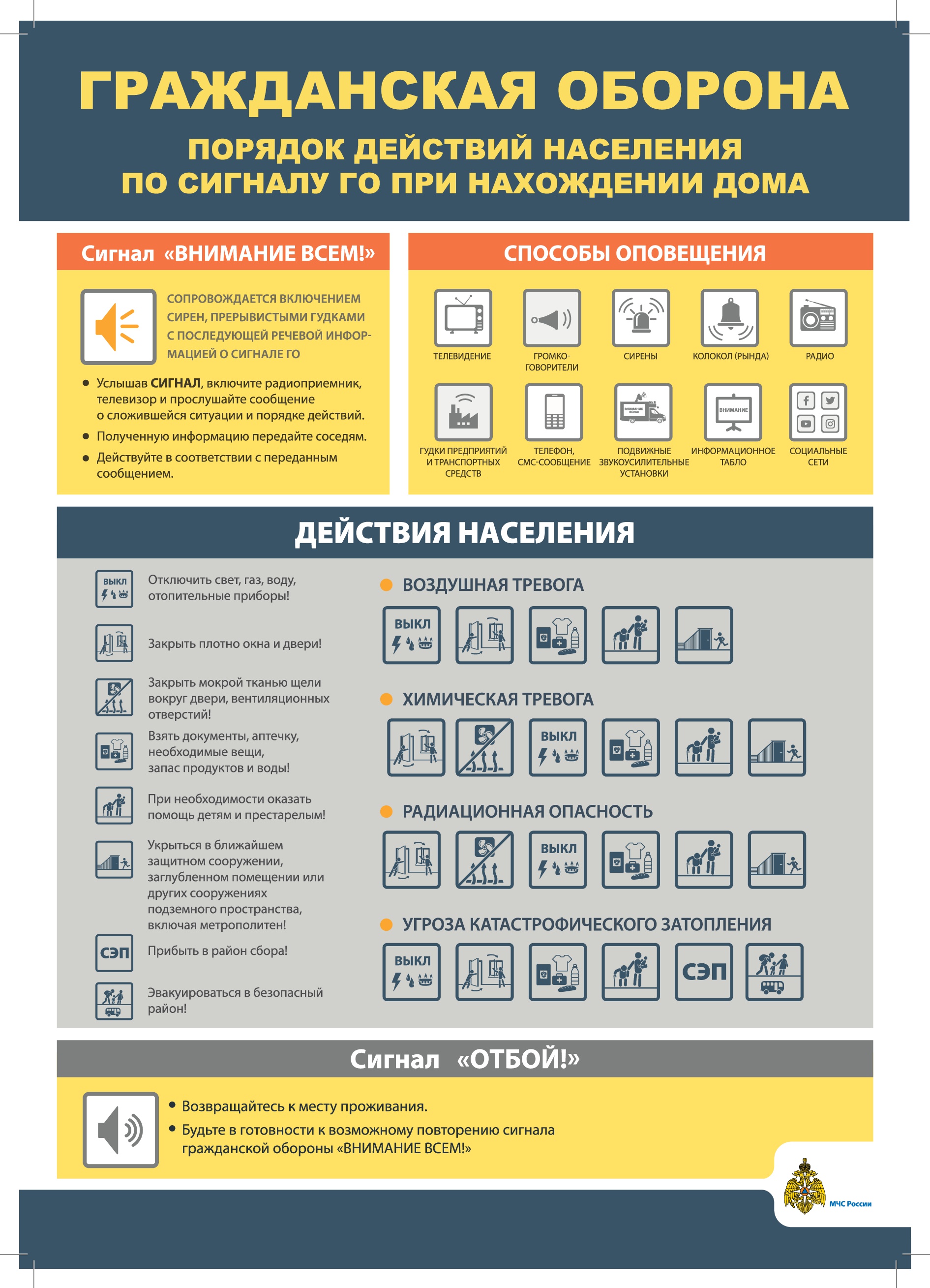 Порядок действий населения по сигналу Гражданской обороны при нахождении дома