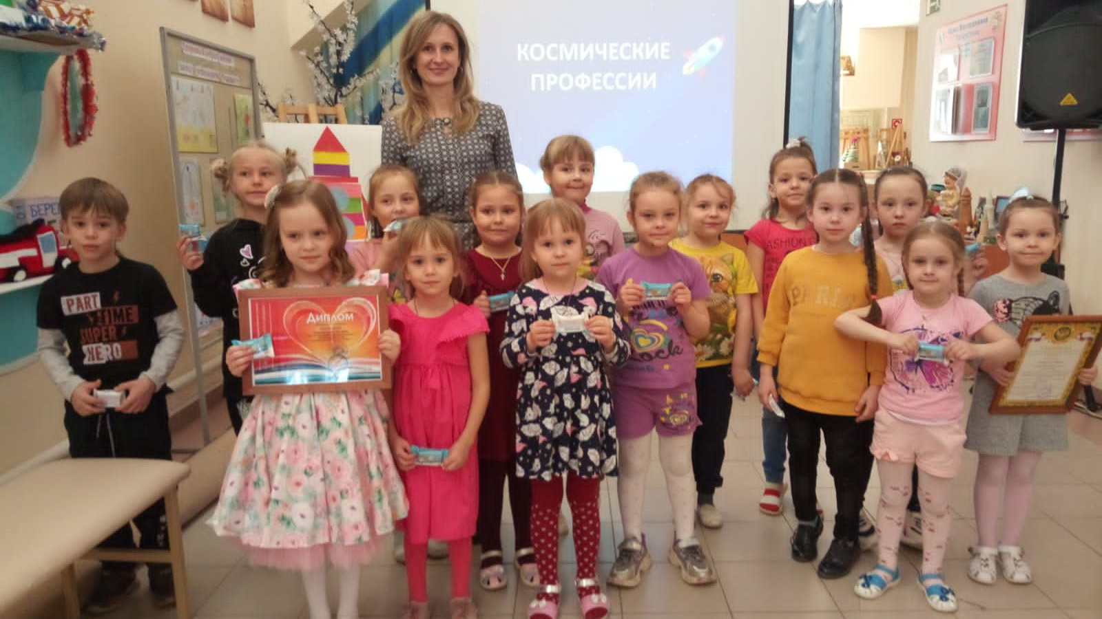 12 апреля педагоги ДДТ Саитова О.А. и Ковальчук И.А. в объединении «Развивайка» провели внеклассное мероприятие, посвященное Дню космонавтики, «Космическое путешествие». Во время мероприятия дети познакомились с профессиями, связанными с космосом. Астроном рассказал, как они наблюдают за звездами, инженер –конструктор помог сделать ракету, космонавт подготовил детей к полету в космос, космический биолог научила сажать растения на Планете цветов. Путешествие было познавательным и интересным, всем очень понравилось.