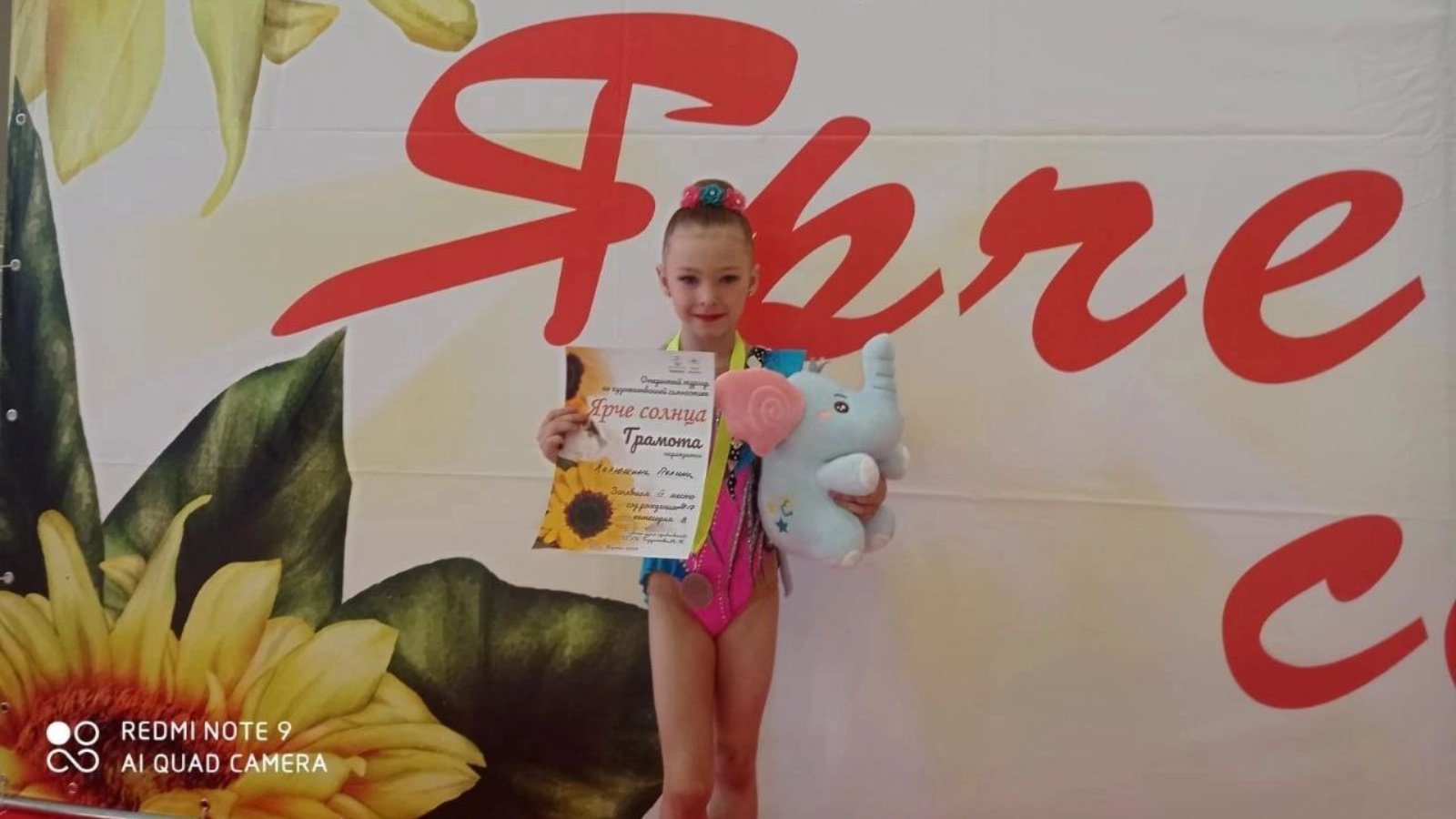 Воспитанница старшей группы детского сада "Теремок" Полина Калюшина приняла участие в Казани, где прошёл турнир по художественной гимнастике «Ярче Солнца».