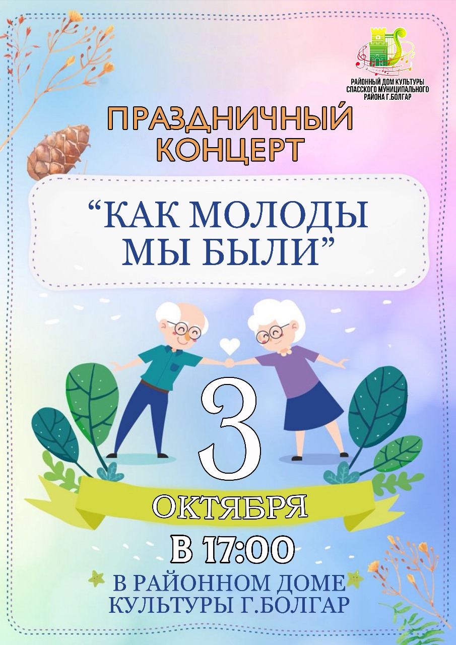 Праздничный концерт "Как молоды мы были" состоится 3 октября 17.00 в районном доме культуры г.Болгар