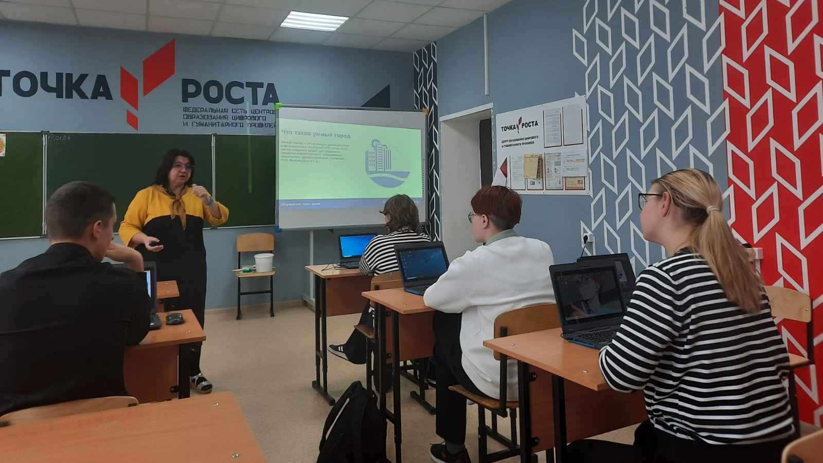 Затем учащимся был показан видеосюжет, в котором герои отправились в будущее и встретились с некоторыми опасностями при использовании устройств умного дома и умного города.