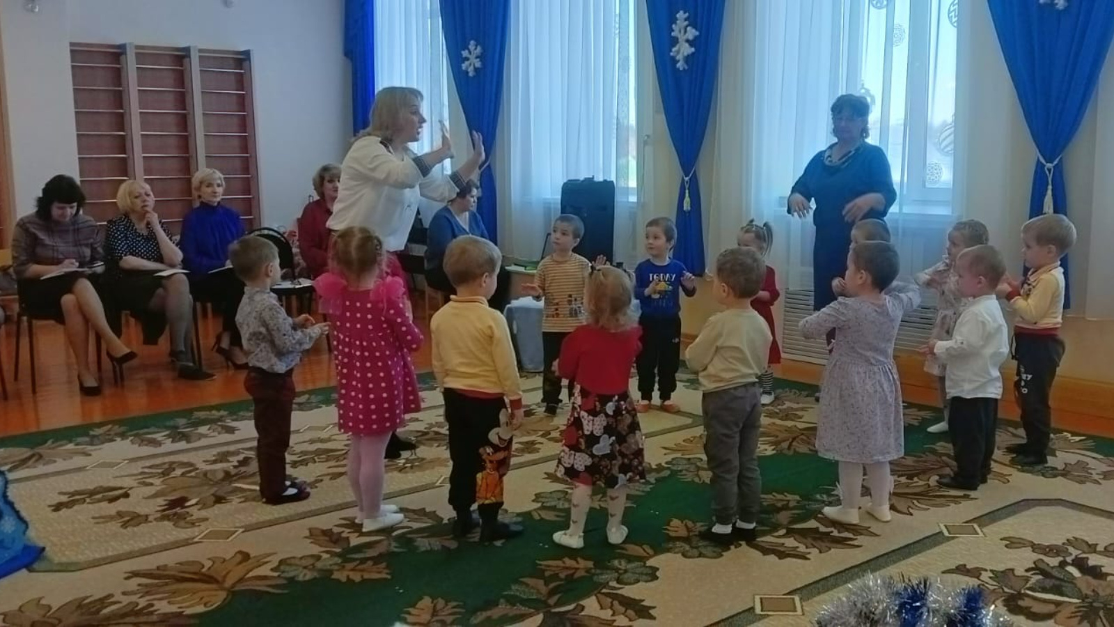 Вниманию участников семинара было представлено музыкальное занятие с детьми второй младшей группы «Путешествие в зимнюю сказку». Вместе с музыкальным руководителем Белоглазовой А.А. («Детский сад «Родничок») дети отправились в путешествие, чтобы помочь зайчику найти друзей. Во время путешествия, дети пели песенки, выполняли танцевальные движения, играли: на колокольчиках, бубнах, искали домик для них. Дети были активны, постоянно проявляли интерес, любознательность.