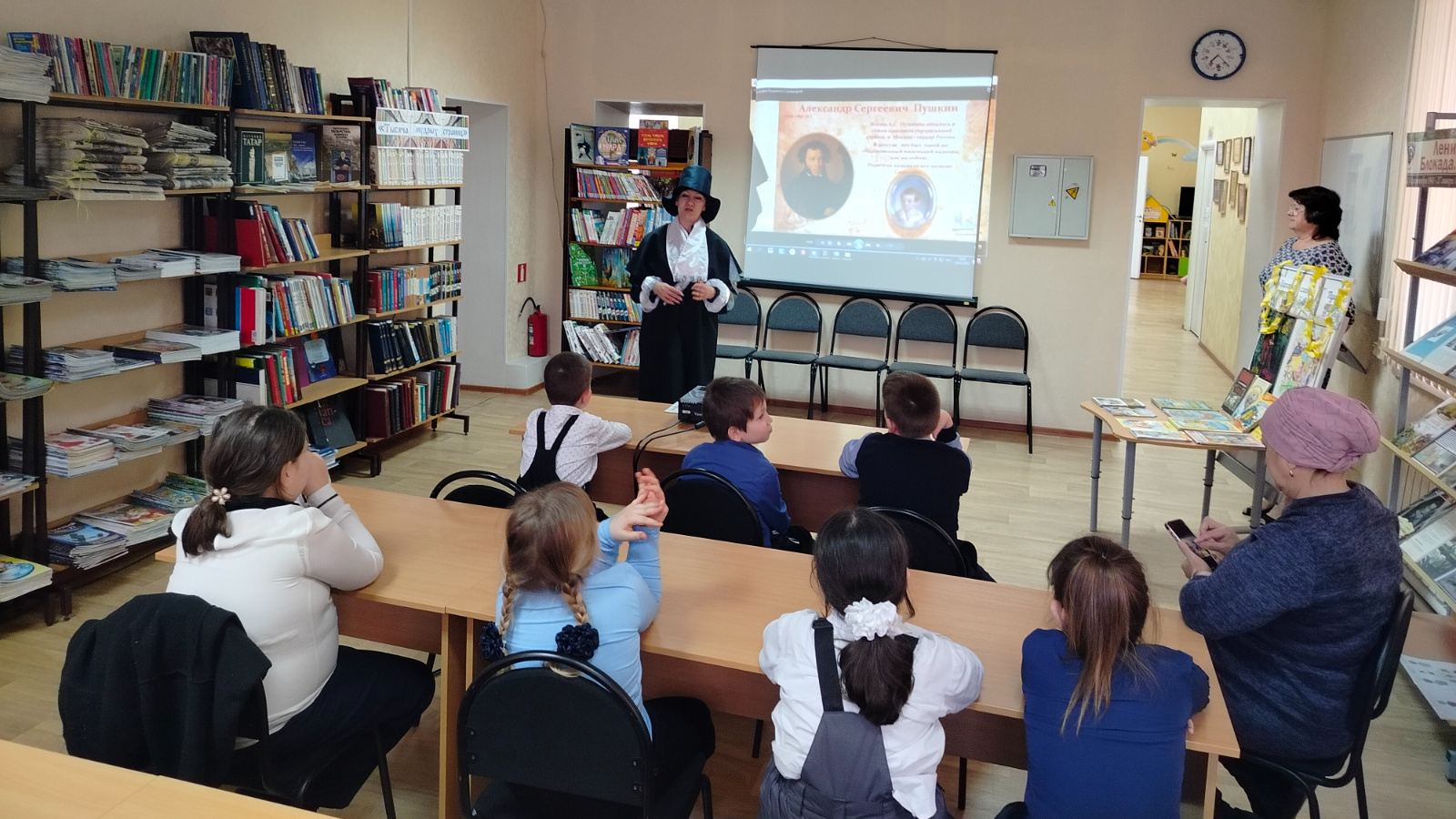 В начале мероприятия ведущая с помощью презентации познакомила ребят с интересными этапами творчества поэта, рассказала о его няне Арине Родионовне, к которой он на протяжении всей своей жизни сохранял трогательное отношение, нашедшее выражение в стихах и личных письмах. Затем в формате викторины дети совершили путешествие по сказкам А.С. Пушкина, а помог им герой сказки поэта, кот ученый. Ребята отгадывали загадки, вспоминали слова для волшебного зеркальца, участвовали в игре «Угадай сказку».