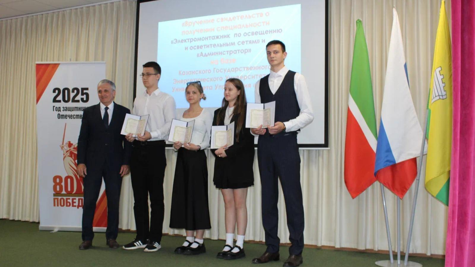 Сегодня на базе МБОУ «Болгарской СОШ №1» состоялось торжественное вручение свидетельств о получении специальностей «Электромонтажник по освещению и осветительным сетям 2-го разряда» и «Администратор» обучающимся 10-х и 11-х классов Спасского района. Обучение проходило на базе Казанского Государственного Энергетического Университета и Университета Управления «ТИСБИ» в рамках реализации национального проекта «Молодежь и дети», единого профориентационного минимума в школах Спасского района .
