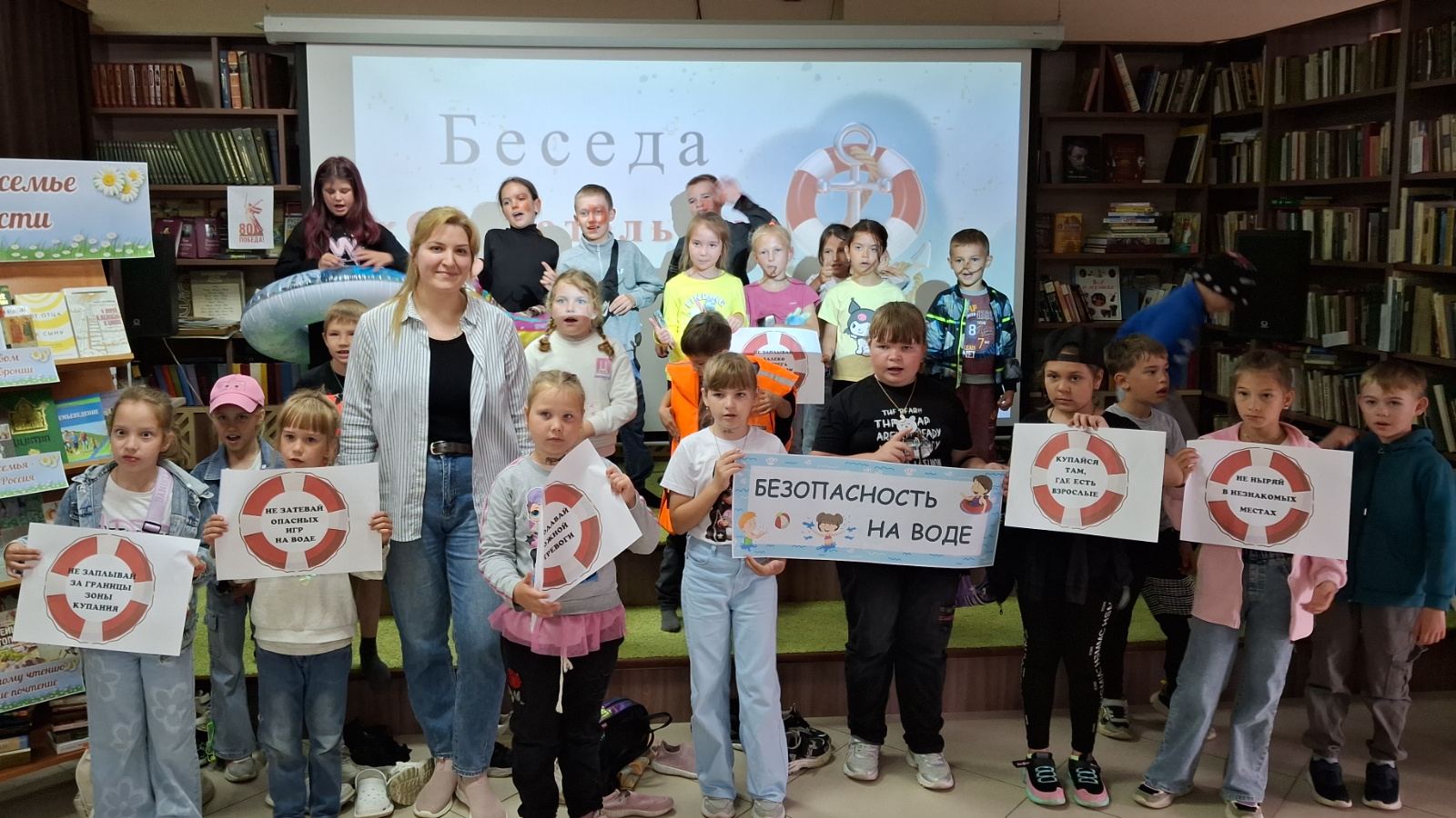 В Центральной библиотеке, в рамках месячника безопасности на водных объектах, для участников пришкольного летнего лагеря прошла эвристическая беседа «Спасательный круг»