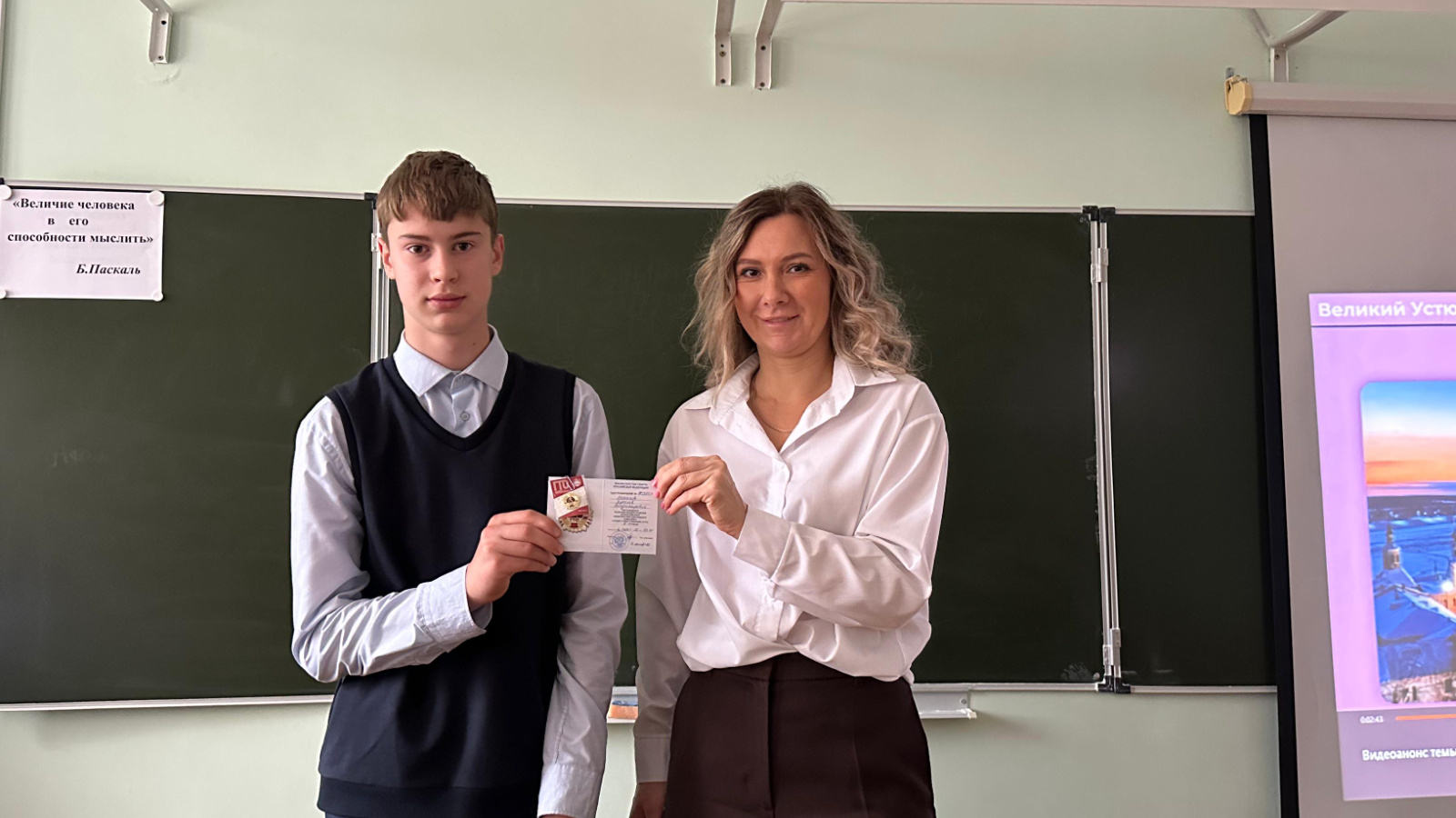 Ярослав Монахов (сегодня к сожалению его не было в школе , поэтому за него знак получил старший брат - Захар Монахов)
