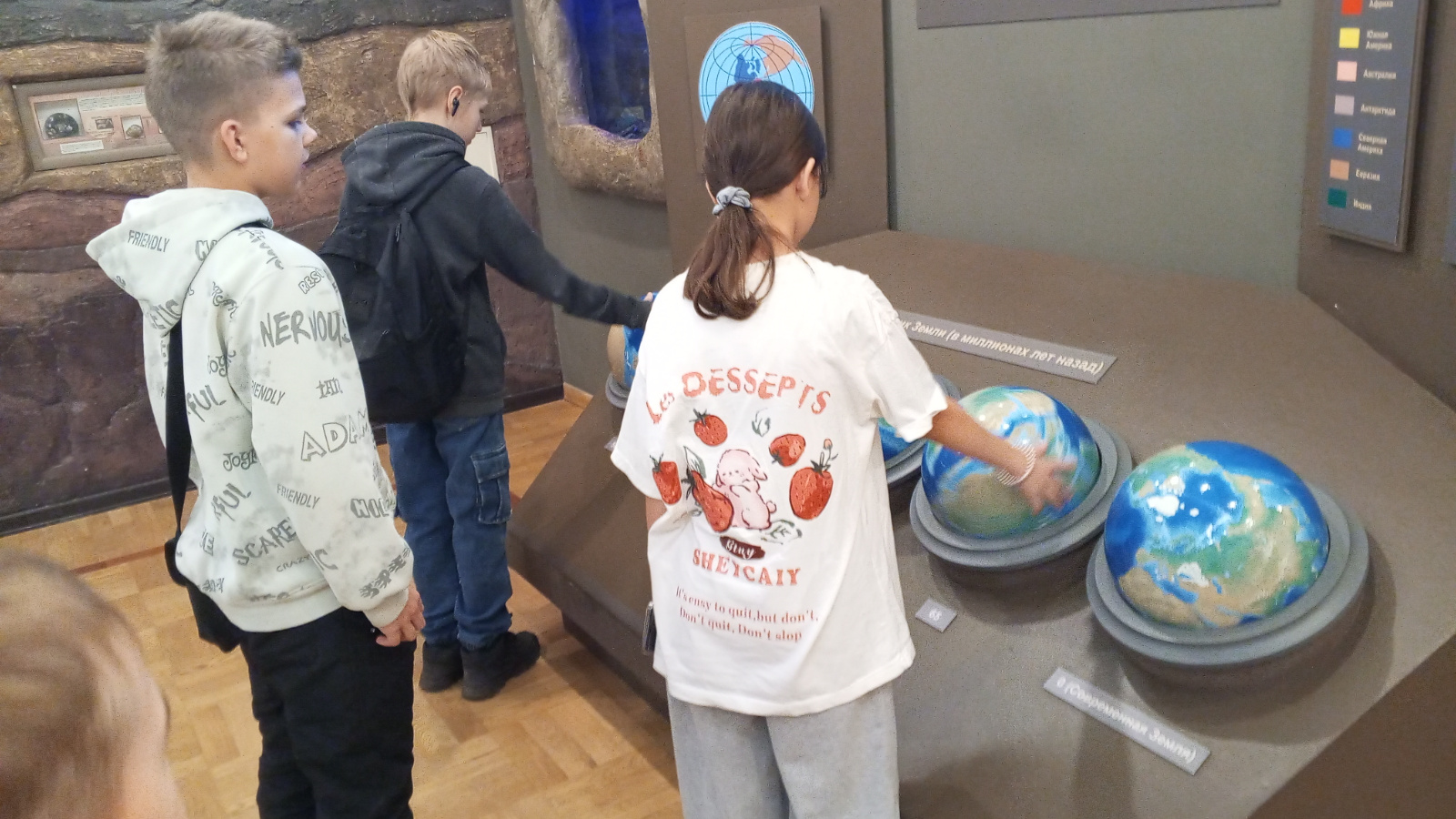 Под руководством педагогов И. А. Ковальчук и Ю. П. Гатиной ребята совершили путешествие вглубь веков. Экскурсовод познакомила их с удивительной историей развития жизни на Земле — от появления первых скелетов до момента, когда планету заселил первый человек разумный.
