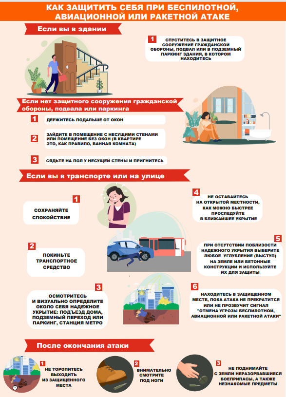 Памятка по действиям населения при беспилотной, авиационной или ракетной атаке