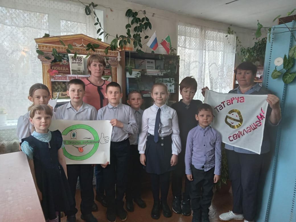 Учителя родного татарского языка Кузнечихинской школы Нуруллина Г. Н. и Сафина А.И. организовали встречу учеников с работником сельской библиотеки Антоновой М.С. И, конечно, поговорили по-татарски!