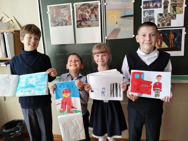 В рамках недели профориентации в Кузнечихинской школе ученики начальных классов нарисовали самые мужественные профессии - пожарного, военного и полицейского.