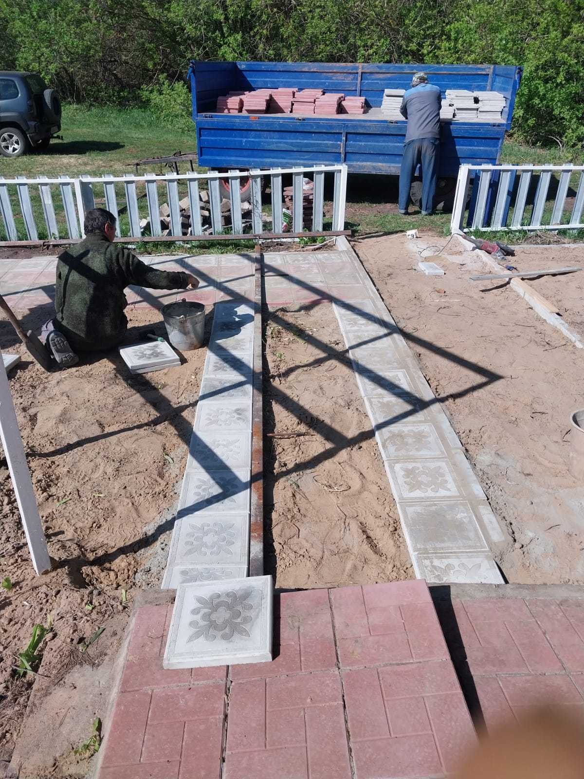 Около памятникаучастникам в ВОВ начался ремонт территории памятника, укладка тротуарной плитки.