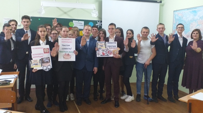 Төркемнәргә бүленеп, балалар коррупциягә каршы көрәш плакатын эшләделәр, коррупция сәбәпләрен ачыкладылар һәм әлеге проблеманы хәл итү юлларын билгеләделәр. Купоросовка Е.В. сүз бирелде. Ул коррупция сәбәпләре турында сөйләде, мондый сорауларга җавап бирделәр: - Безнең районда коррупция мәсьәләләре буенча кая мөрәҗәгать итәргә була? Коррупцияне гамәлгә ашыру өчен җинаятьләрне җәзалауга нинди маддәләр юнәлдерелгән? Коррупциянең дәүләтнең икътисадый, социаль һәм сәяси өлкәсенә ничек йогынты ясавы турында фикер алыштылар.