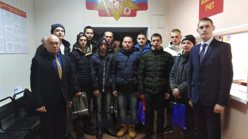 Спас муниципаль районы башкарма комитеты җитәкчесе урынбасары Е.В. Савинов Спас муниципаль районы башкарма комитетының яшьләр эшләре, спорт һәм туризм бүлеге җитәкчесе А.Н. Вәлиәхмәтов призывникларны истәлекле бүләкләр һәм традицион тәңкәләр тапшырды.