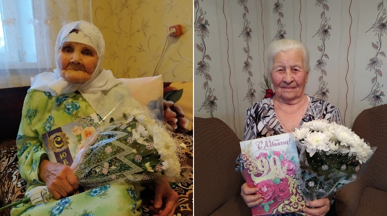 Галия Галиулла кызы һәм Екатерина Андреевнага Россия Федерациясе Президенты В.В. Путин, Спас муниципаль район башлыгы Ф. В. Мөхәммәтовның котлау открыткаларын, азык-төлек җыелмасы тапшырды. Шулай ук юбилярларны ветераннар советы рәисе Т. Н.Бурумова, социаль яклау хезмәткәрләре, туганнары һәм якыннары котладылар.