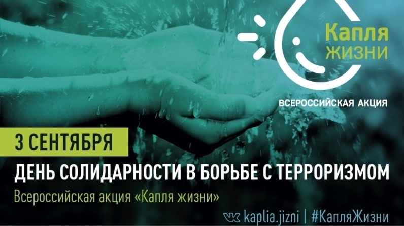 3 сентябрь-терроризмга каршы көрәштә бердәмлек көне. Бу көн 2004 елның беренче сентябрь көннәрендә Беслан шәһәрендә булган фаҗигале вакыйгаларга багышлана. Ул чакта, террорчылык акты вакытында, берничә йөз кеше һәлак булган, аларның күбесе балалар булган. Өч көн дәвамында алар бер тамчы судан эчерә алмадылар. «Тормыш Тамчы» акциясе аша без инде безнең белән булган кешеләрне - чәчәкләргә су сибеп, символик рәвештә тукландырырга чакырабыз.