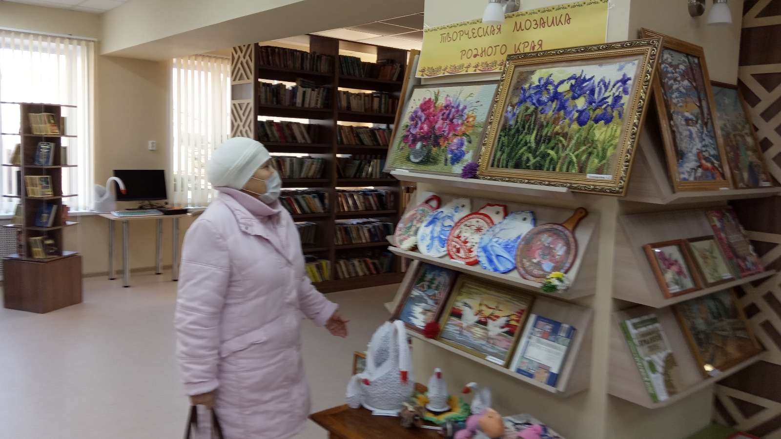 Күргәзмәдә алмаз мозаикасы, тәре белән чигү, төрле техникаларда такталар, акварель белән язылган картиналар, фоамираннан ясалган эшләнмәләр тәкъдим ителгән.