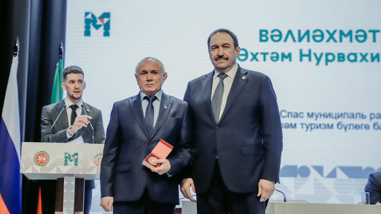 Татарстан Республикасы Премьер-министры А.В. Песошин Спас муниципаль районы башкарма комитетының яшьләр эшләре, спорт һәм туризм бүлеге башлыгы А.Н. Вәлиәхмәтовны "ТАССР төзелүгә 100 ел" медале белән бүләкләде.