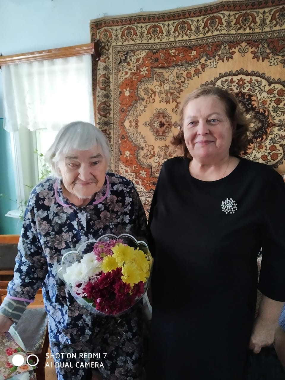 Ветераннар советы рәисе Т.Н. Бурумова, Спас районындагы «Рассвет» халыкка социаль хезмәт күрсәтү үзәге директоры С.В. Гыйбадуллина Ягнова Е.С. тууына 90 ел тулу белән котладылар, Евдокия Сергеевнага Спас муниципаль районы башлыгы Ф.В. Мөхәммәтовтан котлау открыткалары, шулай ук бүләк җыелмасы, чәчәкләр тапшырдылар.