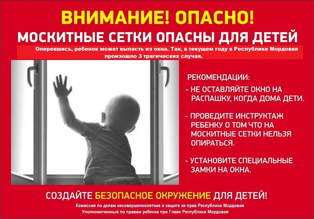 Тәрәзәдән егылу-балалар травматизмының һәм үлем санының төп сәбәпләреннән берсе, бигрәк тә шәһәрләрдә. Балалар ачык тәрәзә алдында табигый кызыксынучанлык аркасында бик зәгыйфь. Ел саен биеклектән егылудан бик күп балалар үлә. Уяу булыгыз!